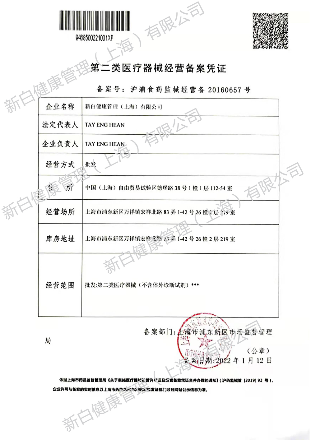 - 二類醫(yī)療器械經(jīng)營備案號(hào):滬浦食藥監(jiān)械經(jīng)營備20160657號(hào)